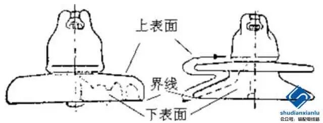 (3)将所用水充分清洗绝缘子,同一表面清洗2~3次。清洗时应注意防止悬式绝缘子钢脚和下表面最内圈污秽物混入(见下图)。